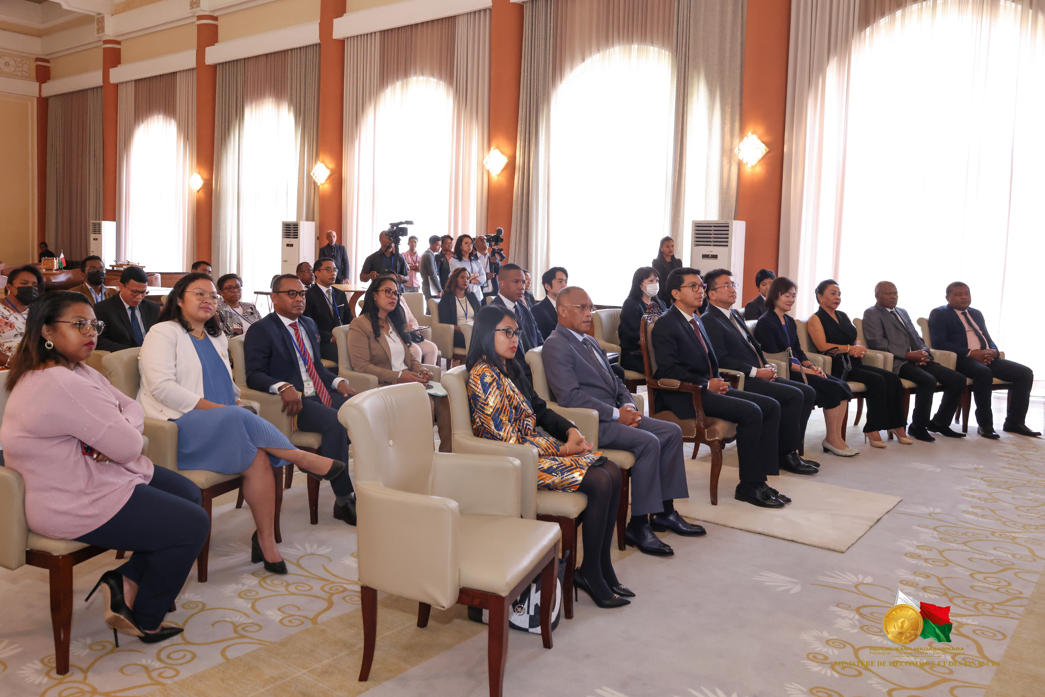 Les gouvernements de Japon et de Madagascar, respectivement représentés par Madame le Représentant de la JICA à Madagascar et Madame le Ministre de l'Economie et des Finances, ont procédé aujourd'hui, à Iavoloha, à la cérémonie de signature d'un accord de don d'une valeur de 15.258.508,77 USD en présence du Président de la République, Monsieur Andry RAJOELINA. Ce projet marque l'engagement du Japon dans sa contribution au développement de Madagascar, notamment dans son objectif de développer la filière rizicole et de devenir, à terme, autosuffisant en alimentation, voire même devenir le grenier en matière de riz dans la Zone Océan Indien. Des objectifs d'ailleurs stipulés dans le Programme Émergence Madagascar (PEM) dans le Velirano numéro 9.