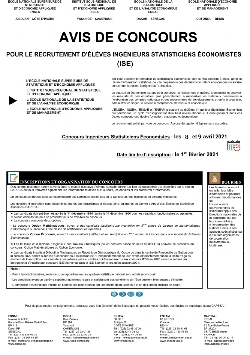 Recrutement d'élèves Ingénieurs Statisticiens Economistes (ISE) - Télécharger