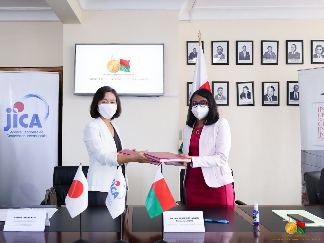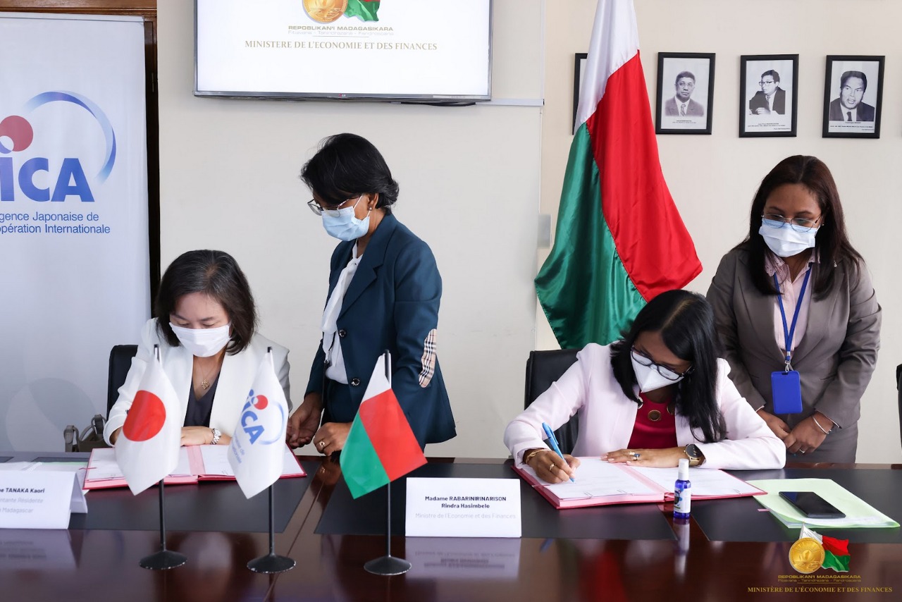 Renforcement de la coopération Nippo-Malagasy Le Ministère de l’Economie et des Finances a abrité ce 11 janvier 2022 la cérémonie de signature d'un accord de Don entre le Gouvernement du Japon via l'Agence Japonaise de Coopération Internationale (JICA) et le Gouvernement Malagasy représenté par le Ministre de l’Economie et des Finances, Madame Rindra Hasimbelo RABARINIRINARISON. Le montant de ce don s’élève à 163,7millions de Yen et sera attribué à l’Office de la Radio et Télévision publiques de Madagascar (ORTM) pour la fourniture en matériel audiovisuel en technologie de pointe à la Télévision Malagasy (TVM) afin de renforcer les matériels de diffusion, de production et de montage déjà existants. Il contribuera à l’amélioration de la qualité des émissions de la TVM par l’augmentation de la qualité de la production et l’audience ; à l’enrichissement de leurs contenus et enfin à l’élargissement de l’accès à l’éducation qui se trouve au centre du développement du pays. Durant la cérémonie, la Ministre de l’Economie et des Finances a évoqué le fait que, « la télévision est un excellent outil pour accompagner les changements sociaux ». Il est également à rappeler que recevoir des images et informations de qualités est un droit de chaque citoyen. A part les deux signataires, Mesdames Kaori TANAKA, Représentante Résidente de la JICA à Madagascar et Rindra Hasimbelo RABARINIRINARISON, Ministre de l'Economie et des Finances, étaient également présents, le Chargé d'Affaires à l'Ambassade du Japon, Monsieur TAKAKU Yoshiki et la Ministre de la Communication et de la Culture, Madame Lalatiana ANDRIATONGARIVO ainsi que Jean Yves Evariste BELALAHY et Nampoina RANARIVELO, respectivement Directeur Général de l’ORTM et Directeur de la TVM.
