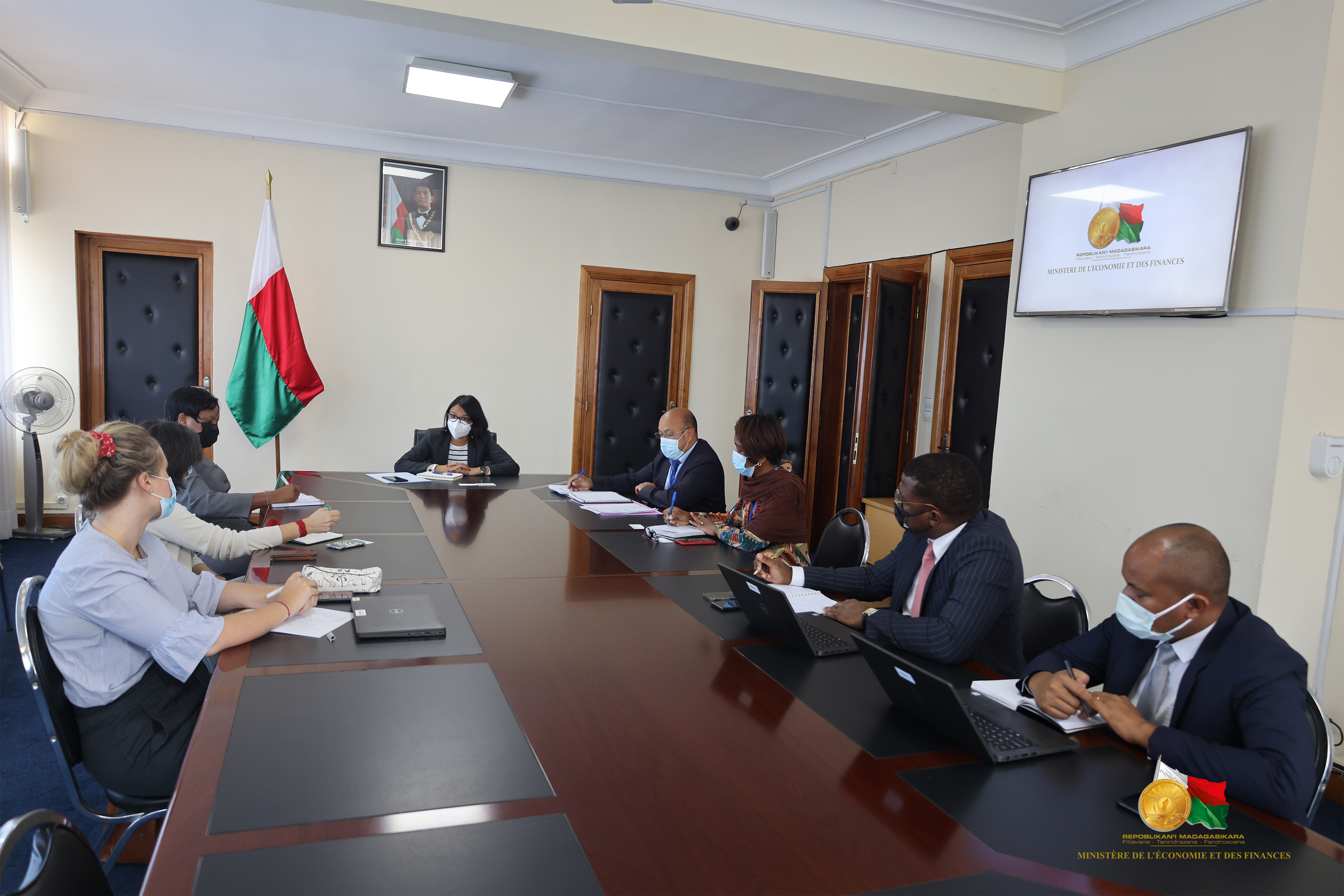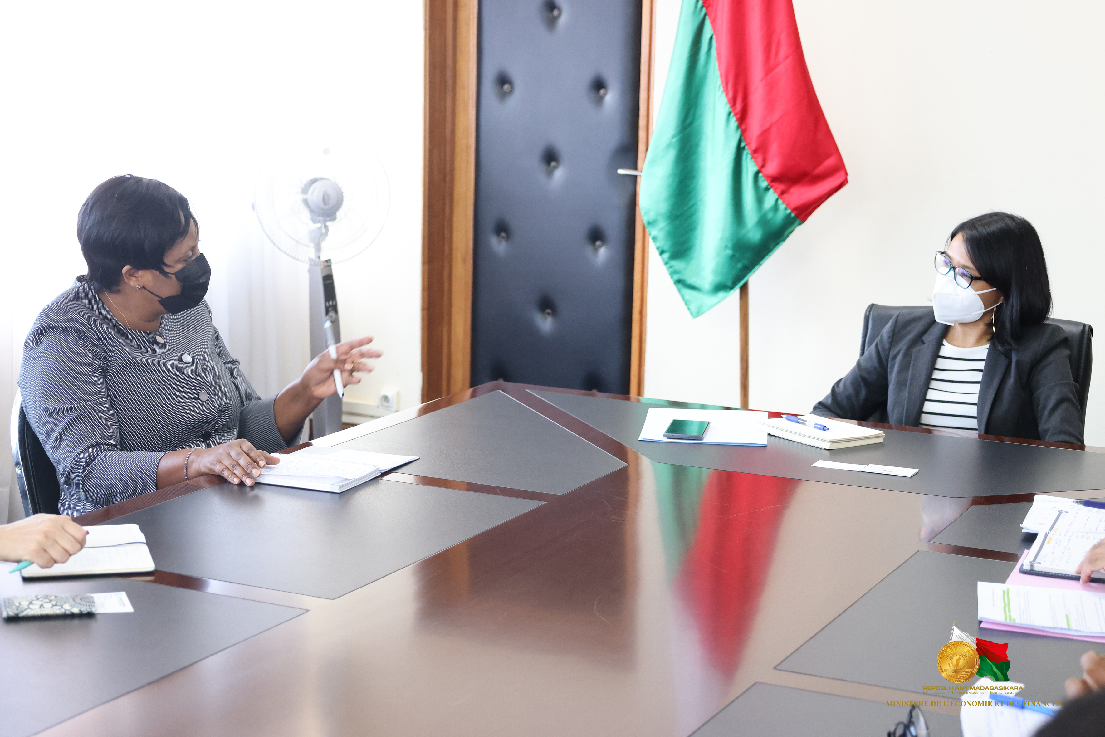 Après cette visite, Madame le Ministre et ses collègues ont enchainé par une réunion de travail avec une équipe de la Banque Mondiale, conduite par Madame Marie-Chantal Uwanyiligira, Représentante Résidente de la Banque Mondiale à Madagascar. Les discussions se sont focalisées sur :